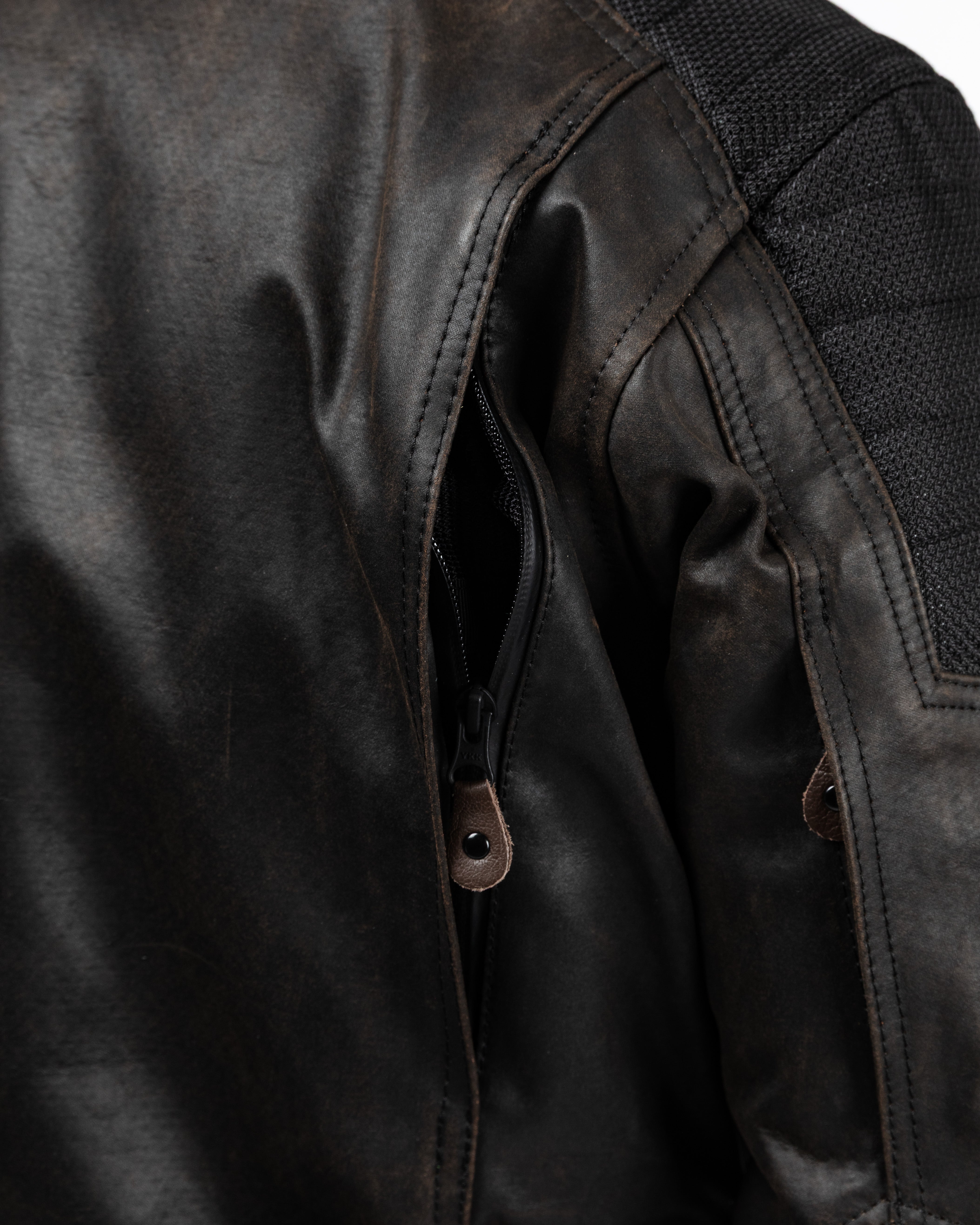 Built for year-round riding, its tough water-repellent outer shell features a laminated mesh that develops a distinctive patina over time. A 10K waterproof and breathable membrane keeps you dry while preventing overheating, with zippered vents allowing for cooling airflow in warmer conditions.