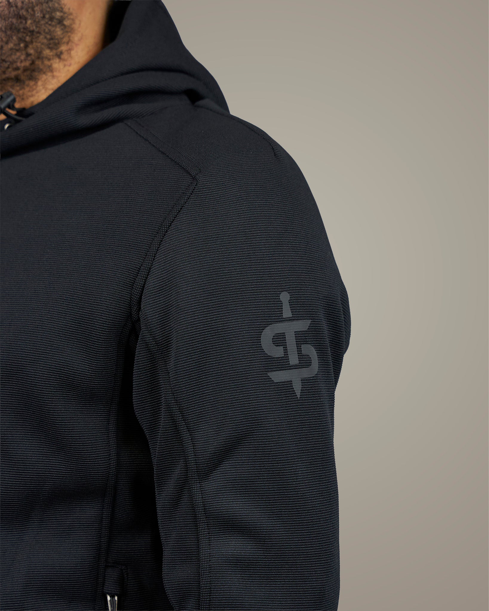 - Concealed thumb loops at the cuff